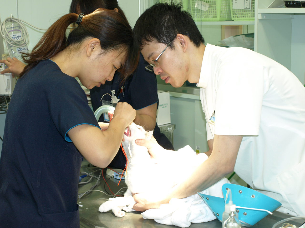 チームの輪を大切に新人獣医師とベテラン獣医師で診察をサポートします。